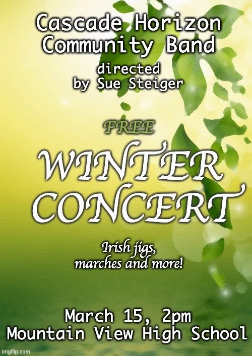 In the Fall of 2025, our members voted to become Cascade Horizon Community Band, welcoming all ages. We provide a non-intimidating, no audition environment to grow musically and enjoy rehearsing, playing and performing with others. We have beginners, retired music educators, professional musicians and returning life-long players. Mentoring and personal collaboration gives us the ability to play a wide variety of music.
